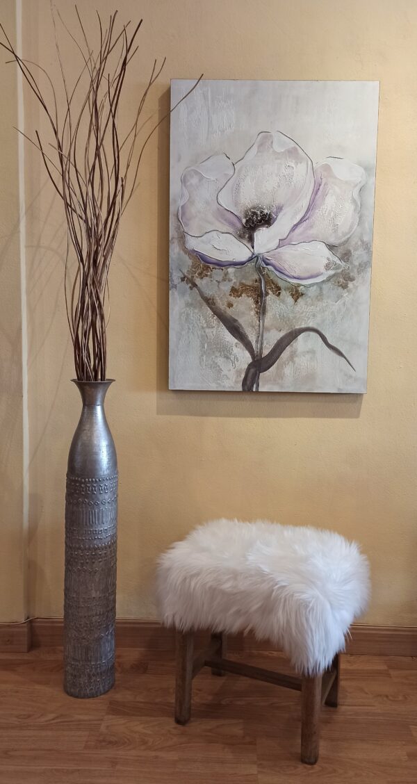 Cuadro pintado a mano con tema floral. Sobre lienzo y montado en bastidor de madera de 3cm.