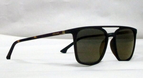 Gafa de sol en pasta, Caballero. Frente marrón, varillas marron camuflaje. Lentes grises con espejo dorado. Calibre 53×19