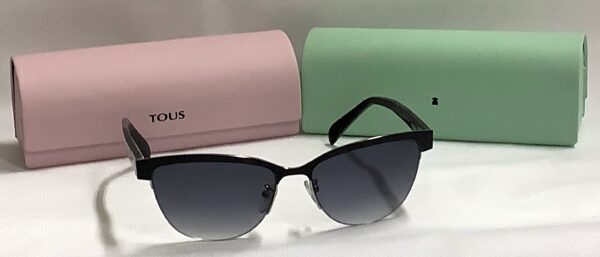 Gafa de sol metalica al aire. Señora.Frente rojo, varillas pasta estampadas, lente degradado gris. categoria 3. Calibre 57×17